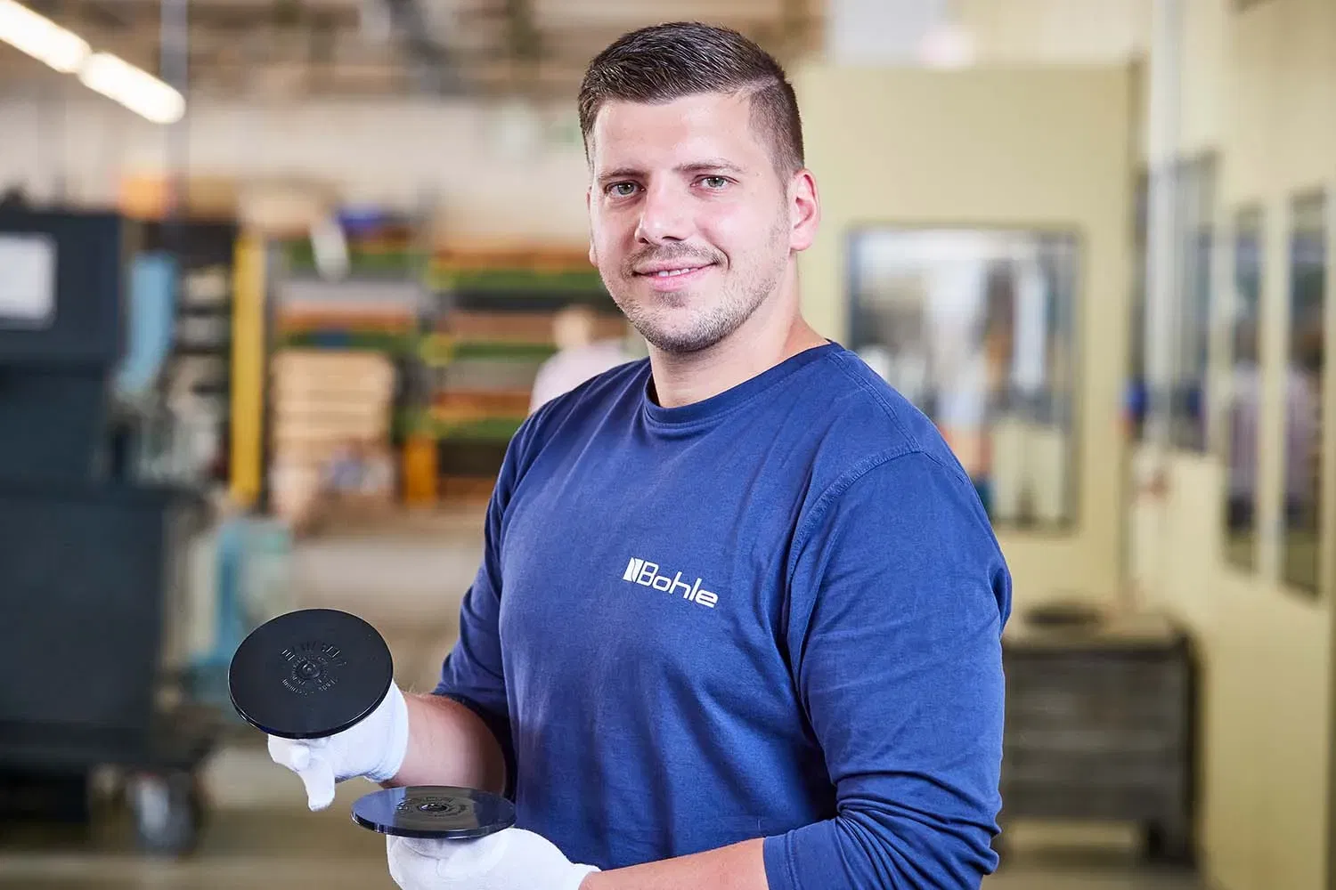 Die Bohle-Reise ging zum Glück weiter. Vorarbeiter Vulkanisation war die nächste Etappe. Völlig fremd auf dem Gebiet der Vulkanisation, konnte ich mich hier dennoch bestens einarbeiten. Zu guter Letzt kam dann die Belegung der Stelle zum stellv. Meister und seit Anfang 2023 eben der Meister der Zerspanung & Vulkanisation. Dass die Reise schon so lange und nun in der neuen Position weiter geht, freut mich sehr."